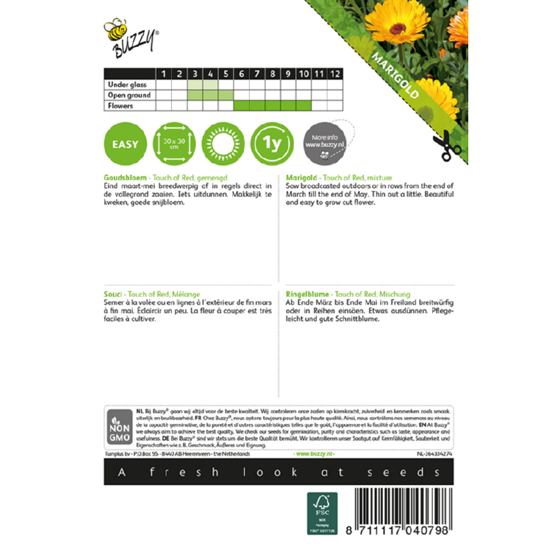 Buzzy® Calendula, Goudsbloem Touch of Red